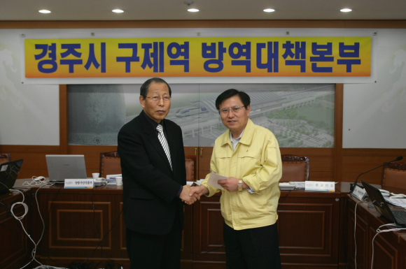 또한 경주시 구제역 대책 상황실을 찾는 기관단체가 늘고 있는 가운데 지난3일 경북시군의장협의회에서 컵라면 30박스와 김치15kg를 4일 경주제일교회에서 성금 3백만원을 기탁 하는 등 각지에서 따뜻한 격려를 보내주고 있다.