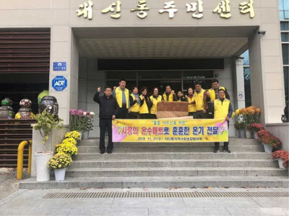 대신동지역사회보장협의체(공동위원장: 대신동장, 이옥혜)는 2018.11.21(수) 홀몸 어르신 5명에게 따뜻한 겨울을 보낼수 있도록 사랑의온수매트를 전달했다.