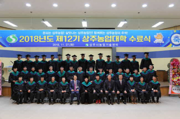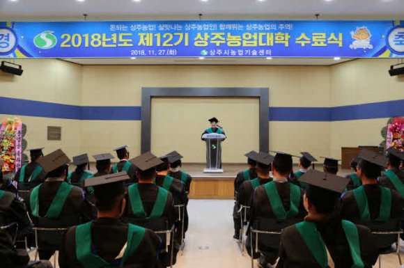 상주시는 11월 27일(화) 농업기술센터 대강당에서 농업대학장인 황천모 시장님과 농업대학 수료생, 운영위원 등 70여명이 참석한 가운데 제12기 상주농업대학 포도학과 수료식을 개최했다.