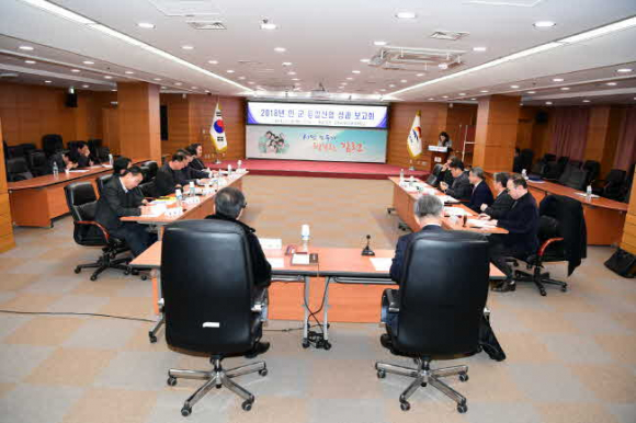 김천시(시장 김충섭)는 지난 11월 29일 김천시청 회의실에서 관내 군수 기업체 대표 및 자문협의회 위원 등 20여명이 참석한 가운데「2018년 민·군 융복합산업 육성을 위한 성과보고회」를 가졌다.