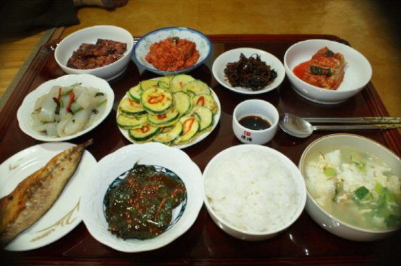 아침에 대접해준 밥상에는 밥식혜 (새콤달콤. 밥 알이 씹힌) 가자미 조림. 김치. 호박구이. 묵무침(고소하면서 부드러운 끝 맛이 매콤함). 고등어 구이. 깻 잎. 명태국등 정성이 깃든 음식을 준비해 주었다.