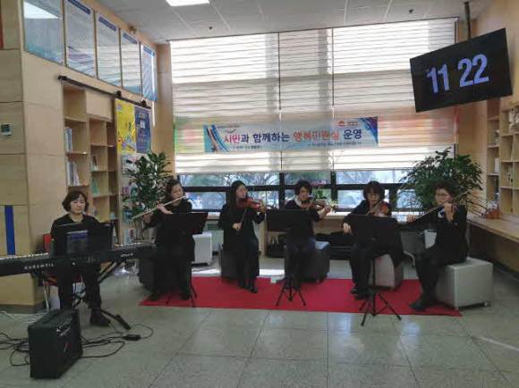 시민들의 재능기부로 시작된 「시민과 함께하는 행복민원실」작은 음악회는 지난 8월부터 시범적으로 운영하고 있으며, 이번에 개최된 작은 음악회는 고운소리 동호회원 등 7명이 재능기부에 참여, 바이올린, 플롯, 신디사이저연주로 시청 민원실을 방문한 시민들에게 아름다운 선율을 선물하였다.