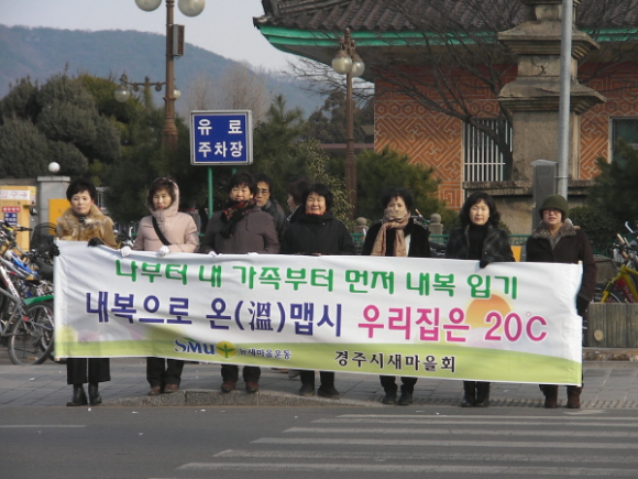 경주시 새마을회에서는 뉴새마을 운동의 하나인 그린코리아 운동의 일환으로 겨울철 내복 입기를 통한 에너지절약 캠페인을 꾸준히 전개해 나갈 계획이다. |