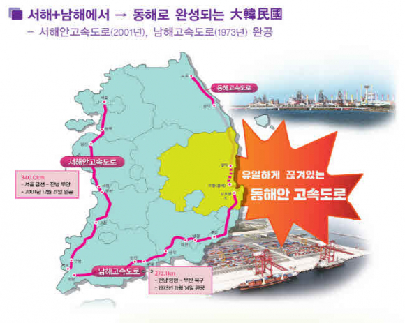 동해안고속도로 건설은 그간 L자형 개발로 소외된 동해안축 교통망을 확충하여 국가균형발전을 도모하는 것은 물론, 대한민국~북한~중국~러시아의 인적․물적 교역로로써 신북방경제의 중심 동맥으로 자리매김할 사업으로, 공사 중인 포항(흥해)~영덕을 제외한 영일만 횡단구간 17.1km(1조 9,837억원), 영덕~삼척구간 117.9km(5조 887억)등 총 135km(7조 724억원) 구간이다.