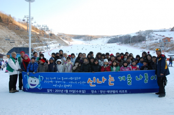 스키장으로의 겨울나들이는 누키봉사대 산하 직원 봉사 동호회인 ‘사랑나눔회’가 매년 겨울방학에 시행하고 있는 봉사활동으로 아이들에게 재미와 감동을 안겨주고 있는 프로그램이다.