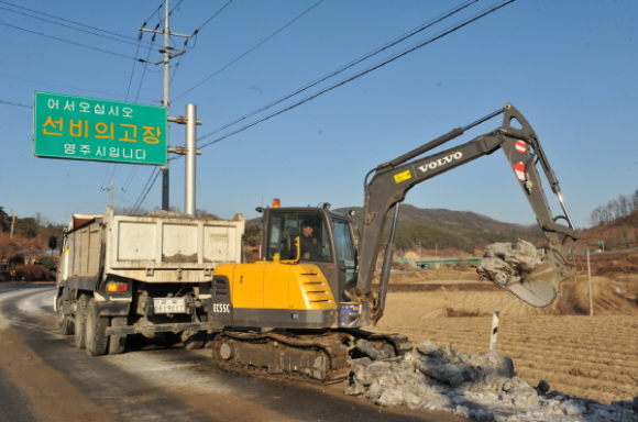 코레일 경북본부와 영주국유림관리사무소에서는 재난안전 대책본부가 가동되면서부터 포크레인 및 덤프를 동원 초소 차량방역으로 생긴 도로에 얼음을 제거함으로서 초소를 통과하는 차량의 안전운행에 많은 도움을 주었다.