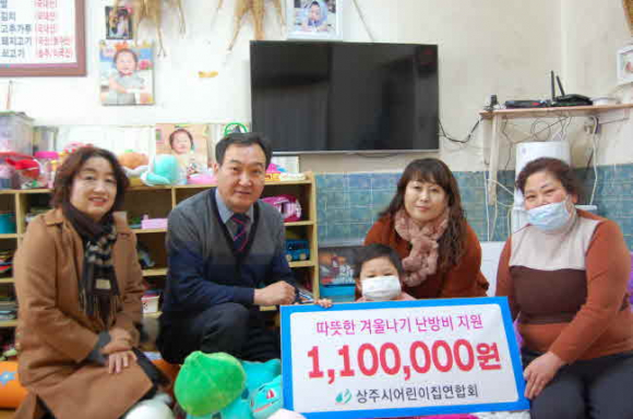 지난해 10월 27일 상주북천시민공원에서 열린 상주시사회복지박람회에 참가한 상주시어린이집연합회는 어린이집 이용 아동 가정에서 사용하지 않는 물품을 기증받아 알뜰 장터를 운영했다. 이때 모인 수익금 110만원을 급성백혈병 진단으로 항암 치료를 받고 있는 모서면 아동, 부모님 얼굴도 모른 체 외할머니 품에서 양육되고 있는 청리면 아동, 장애를 가지고 있는 아버지가 힘겹게 가정을 이끌어가고 있는 화남면 다문화가정 아동 등 총 3명에게 난방비로 지원했다.