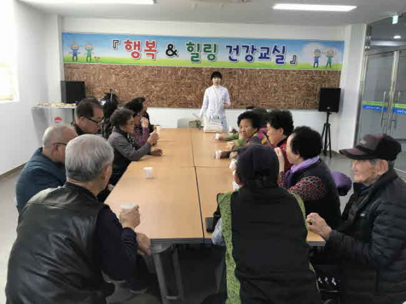 『행복&힐링 건강교실』프로그램은 혈압, 혈당, 콜레스테롤 등 기초적인 검사와 함께 만성질환 예방관리를 위한 교육, 스트레스 해소 및 기분상태의 개선을 위한 웃음치료 및 노래교실, 몸의 균형과 신체활동능력을 높여 줄 건강체조 프로그램을 운영하고 저염식 생활방법과 균형잡힌 식생활의 중요성을 어르신들의 눈높이에 맞춰 설명해드리고 일상생활에서 직접 실천할 수 있도록 영양실습을 실시한다.