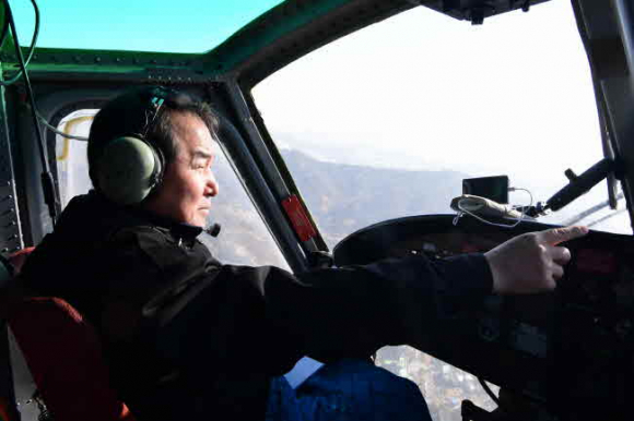 김충섭 시장 “헬기로 주요사업장을 점검하다”
