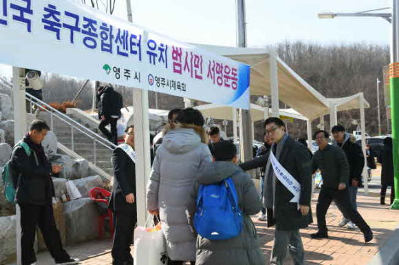 영주시에서는 지난 10일 장욱현 영주시장이 대한축구협회에 대한민국 축구종합센터 유치 신청서를 직접 제출한 이후 범시민 서명운동을 펼치고 있으며, 문화의 거리 현장 서명운동 등 현재 2만 명의 서명을 받았다.