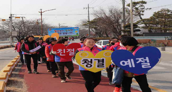 생활개선김천시연합회(회장 김경자)는 2월 25일(월) 김천시 고수부지 주차장에서 생활개선회원 60여명이 참석한 가운데 ‘Happy Together 김천 친절·질서·청결 운동’ 캠페인을 벌였다.