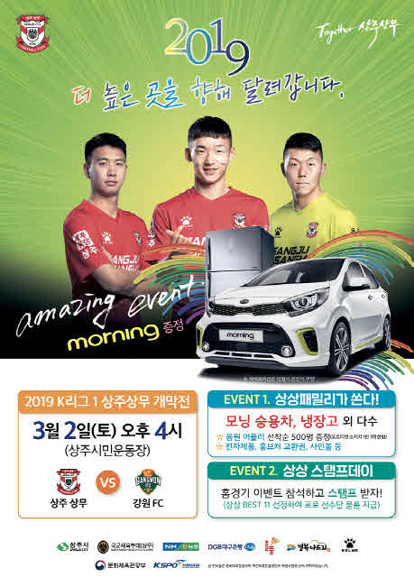 상주상무프로축구단이 강원FC를 안방 구장으로 불러들여 홈 개막전을 펼친다. 개막전을 맞아 경차와 냉장고 등 풍성한 경품 이벤트와 선수단 팬사인회부터 상상스탬프데이까지 다양한 이벤트를 준비했다.