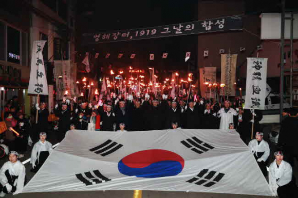 ‘영덕의 함성! 다시 100년의 약속!’이라는 주제로 열린 이번 문화제에는 주민과 관광객 2,000여명이 참여해 100년 전 영해 시가지에서 펼쳐진 독립만세운동의 의미를 되새기고 순국선열들을 추모했다. 독립유공자 후손들과 이희진 영덕군수, 강석호 국회의원, 김은희 영덕군의회의장, 김대훈 경북남부보훈지청장 등이 참석해 행사를 빛냈다.