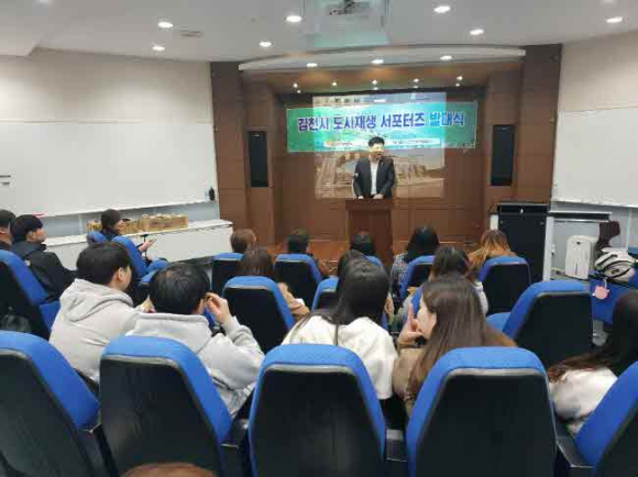 지난 2일 김천대학교 하버드홀에서 『김천시』와 『김천시 도시재생지원센터』가 주최하고 김천대학교 복지융합연구소가 주관하는 “2019년 2기 김천시 도시재생 서포터즈 발대식” 이 진행되었다.