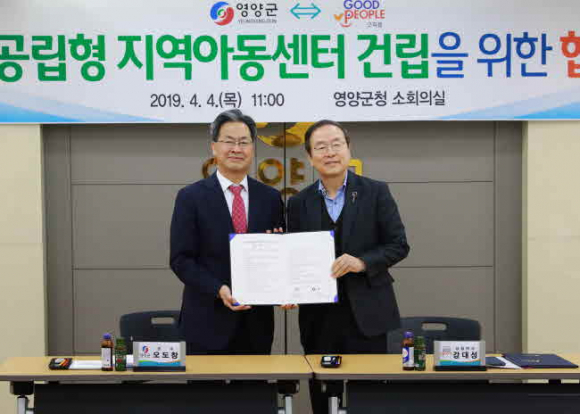 영양군(군수 오도창)은 4월 4일 군청 소회의실에서 (사)굿피플인터내셔널과 공립형 지역아동센터 건립을 위한 협약식을 가졌다.