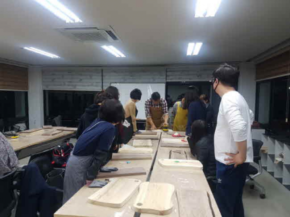 교육 수강생들은 실습에 사용될 원목에 대한 이해 과정과 작업 공구 사용법을 배운 뒤 커팅도마, 플레이팅도마, 냄비받침과 같이 간단한 주방 소품을 만든다.