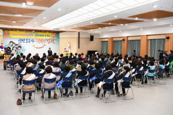 김천시(시장 김충섭)는 지난 4월 10일 시청 3층 강당에서 김천시 여성단체회원 130여명이 참석한 가운데 「Happy together 김천운동」 실천다짐대회와 특강을 실시했다.