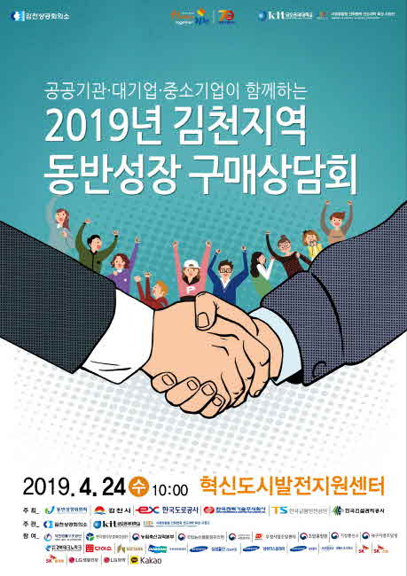 김천시는 오는 24일(수) 10시 혁신도시발전지원센터(구. 산학연유치지원센터)에서 ‘공공기관ㆍ대기업ㆍ중소기업이 함께하는 2019년 김천지역 동반성장 구매상담회’를 개최한다고 밝혔다.