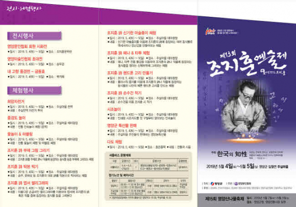 올해 조지훈 예술제는 길놀이인‘책(BOOK) 퍼레이드’를 시작으로 조지훈 전국 백일장 및 사생대회, 승무공연(승무따라하기), 문학 강좌, 문학세미나, 조지훈 시(詩) 가곡음악회, 제5회 조지훈시낭송 퍼포먼스대회, 인디밴드 공연 등이 진행되며, 행사기간 2일 동안 영양문인협회 회원들의 시화전, 영양미술인협회 초대전, 금동효 화백의‘내고향 영양 풍경전 및 각종 체험행사들로 문학인들과 관광객들의 눈과 귀를 즐겁게 해줄 다채로운 행사들로 운영된다.