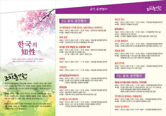 이번 예술제의 문학 강좌에는 영남대 국문학과 김남주 교수의‘조지훈 시에 나타난 현실주의와 역사의식에 관한 고찰’이, 문학세미나에서는 숙명여대 강기옥 석좌교수의‘조지훈의 작품에서 등장하는 여인의 삶에 대한 시대적 조망’이라는 주제로 강연이 진행된다.