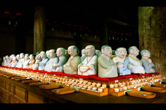 ◎ 영천에서 유일하게 국보 문화재를 보유한 거조사 거조사는 은해사의 말사로서 신라 효성왕 2년(서기 738) 원참대사가 창건했다고 전해지며 본사 은해사보다 창건 연대가 앞선다. 그 뒤 고려 우왕 13년 혜림법사(慧林法師)와 법화화상이 영산전을 건립했다고 한다. 국보 제14호인 영산전은 고려말∙조선초 주심포 양식의 형태를 충실하게 보여주고 있어 귀중한 문화재로 평가 받는다. 또한 영산전 안에 모셔진 526기의 석조 나한상은 하나하나 다른 표정과 영험을 지녀 3일간 치성을 드리면 소원이 이루어진다고 해 많은 신도들이 찾고 있다. 영산전을 둘러보고 있노라면 어디선가 나한들의 웃음소리가 들리는 듯하다.
