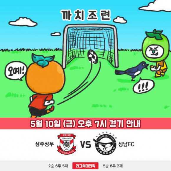K리그1 11라운드 상주상무와 성남FC 경기가 오는 5월 10일(금) 오후 7시 상주시민운동장에서 펼쳐진다. 상주는 성남과의 FA컵 32강전을 통해 탐색전을 마쳤다. 상주는 리그에서 다시 만나게 된 성남을 상대로 ‘불금’ 경기에서 ‘불타는 경기력’을 선보이겠다는 다짐이다.