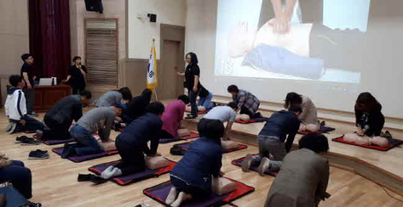 이날 교육은 경상북도 위탁협약 기관인 동국대학교 경주캠퍼스 산학협력단 소속 응급구조 전문 강사가 구체적인 이론교육과 더불어 마네킹을 이용한 심폐소생술, 자동심장충격기사용법 등 실제 상황에서 즉각적인 대처가 가능하도록 실습 위주로 진행되었다.