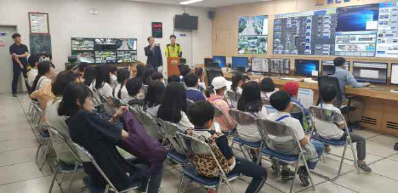 기관의 위치와 역할 등의 설명으로 시작된 견학은 이해를 돕기 위해 준비한 홍보 동영상 관람과 깨끗한 감천 복류수를 이용하여 안전한 수돗물로 만드는 정수처리과정을 직접 눈으로 확인하고 체험하는 현장중심의 견학으로 진행되었다.