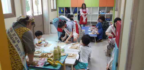 김천시보건소에서 운영중인 성장기 아동을 둔 부모 건강요리교실 참여자들이 “Happy together 김천 나눔 운동”실천을 위해 위해 5. 3.(목) 개령초등학교 돌봄교실 아동들과 함께 식이섬유가 풍부한 통밀식빵과 바나나, 꿀을 활용한 건강 샌드위치를 만들고 먹어보는 영양실습을 진행 했다.
