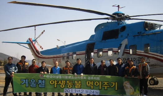 경주시 환경과와 한국야생동식물관리협회 경주지부 회원들은 지난 24일 동절기 대설 및 혹한으로 먹이가 부족한 야생동물에 게 먹이주기를 실시했다.