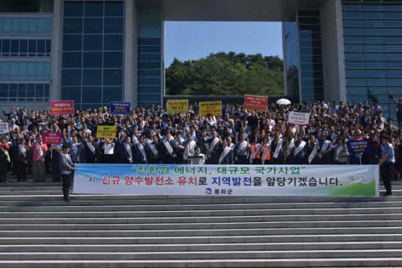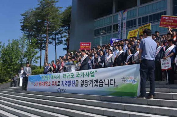 이날 행사에서는 양수발전소 유치 호소문 낭독을 시작으로 양수발전소 유치 구호 제창 등 지난 10일 수몰지역 찬성 기자회견에 이어 범군민차원의 유치결의를 다시 한번 다지는 기회를 가졌다.