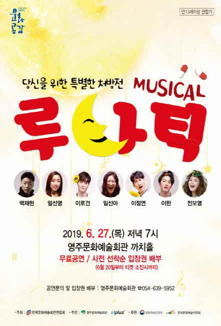 영주시는 오는 27일(목) 저녁 7시 영주문화예술회관 까치홀에서 마음이 아픈 환자들을 치유하고 그들에게 따듯한 위로를 전달해주는 창작 뮤지컬 ‘루나틱’을 무대에 올린다.