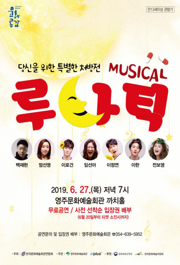 영주시는 오는 27일(목) 저녁 7시 영주문화예술회관 까치홀에서 마음이 아픈 환자들을 치유하고 그들에게 따듯한 위로를 전달해주는 창작 뮤지컬 ‘루나틱’을 무대에 올린다.