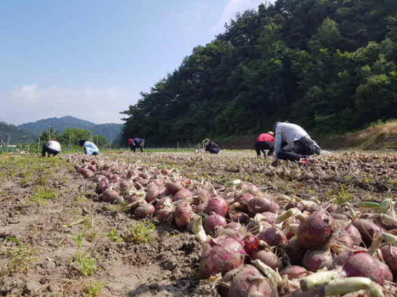 이번 농촌 일손돕기는 양파 공급 과잉 및 수확기 가격하락 우려에 따른 양파 농가의 고충을 조금이나마 덜어주고자 실시됐다.