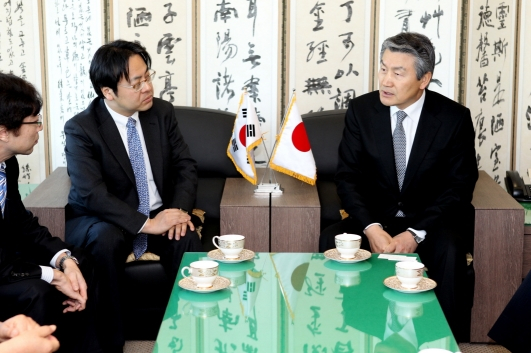미즈코시 히데아키 주한일본대사관 정무공사가 2일 박승호 포항시장을 만난 자리에서 죽도시장의 관광 상품성에 대해 칭찬을 아끼지 않았다.