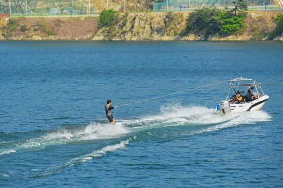 아라월드(익스트림 수상스포츠를 마음껏 즐길 수 있는 곳) 화끈한 물놀이를 즐기고 싶다면 익스트림 스포츠의 천국, 성주호에 위치한 아라월드가 정답이다. 파도가 없는 호수에서 수상레저 8종(바나나보트, 플라이피시, 헥사곤 등)과 수상놀이기구 18종(수상암벽, 블롭점프, 익스트림 짐 등)을 골고루 즐길 수 있고 짜릿한 모터보트로 성주호를 둘러보며 도심 속 스트레스도 날려버린다.