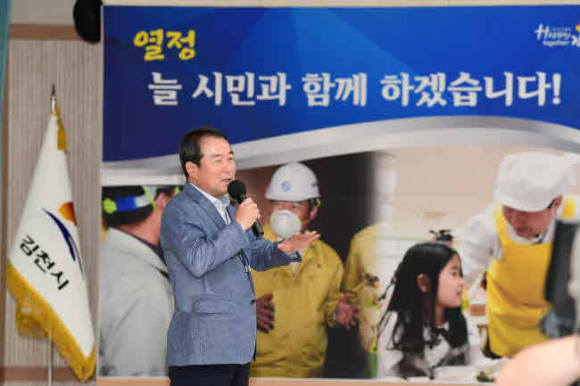 김천시(시장 김충섭)는 민선7기1주년을 맞아 6월 27일(목) 14시 시청3층 강당에서 각계 각층의 시민 100여명이 참석한 가운데 공약을 주제로 시민과 열린 소통의 장 『김천과 사랑에 빠져보세요!』를 개최했다.