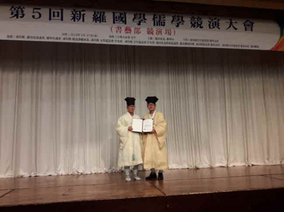 이날 대회에는 경상북도와 경주시가 주최하고, 성균관청년유도회경주지부(지부장 이진택)가 주관했다. 총 4개의 종목으로, 국학부(경전 암송), 의례부(창홀), 예악부(시조창), 서예부(5서체)로 나눠 경연한 결과, 종합상인 신라국학진흥상 장원을 수상했다.