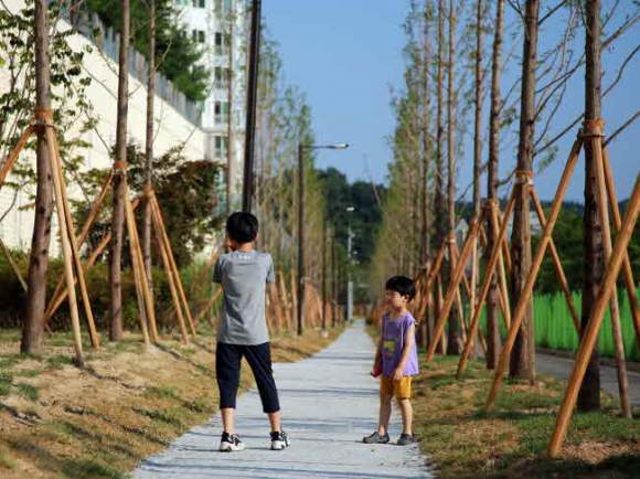 시는 소음차폐와 경관 조성에 효과가 우수한 수목인 메타세콰이어를 900m구간에 2열로 식재해 산책로로 조성하고 소나무를 비롯한 다양한 종류의 수목과 벤치를 곳곳에 배치해 경관이 아름다운 휴식공간을 만들었다.