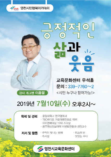 영천시교육문화센터는 오는 10일 방송인 이홍렬을 초청해 올해 세 번째 시민행복 아카데미를 개최한다.