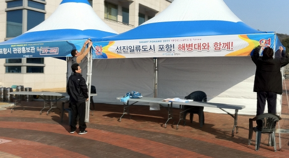 포항시, 현빈 해병대 입소 1만 명 팬들에게 포항 알리기 분주 - 홍보부스, 관광안내소, LED 홍보판설치 먹거리 관광 안내