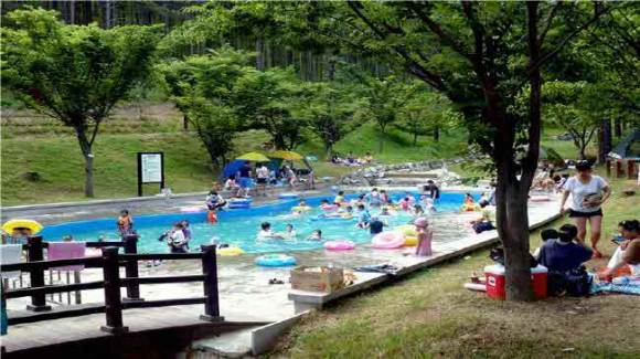 특히, 물놀이장 수심이 70cm 정도로 어린이들이 안전하게 물놀이를 즐길 수 있으며 야영장에서 캠핑과 동시에 물놀이를 할 수 있어서 매년 가족단위 이용객들에게 큰 각광을 받고 있다.