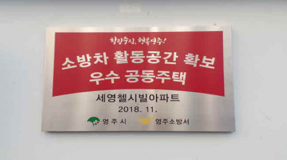 ‘소방차 활동공간확보 우수공동주택 인증제’는 영주시가 2016년부터 전국 지자체 최초로 추진한 시책으로 소방차 활동공간 확보상태가 우수한 공동주택을 선정해 인증하고 공동주택 관리보조금 인센티브를 제공하는 제도이다.