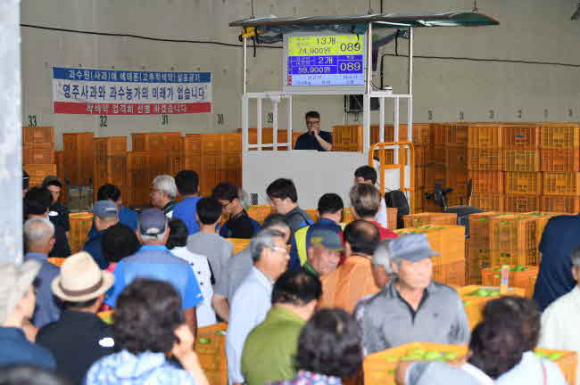 16일 영주시에 따르면 지난 15일 삼영청과 경매식집하장 개장을 시작으로 16일 풍기농협 백신지소 경매식집하장, 17일 영주민영농산물도매시장, 24일 영주농산물유통센터가 차례로 아오리 경매 및 수매에 들어가 전국 유통 판매망을 통해 소비자를 찾아간다.