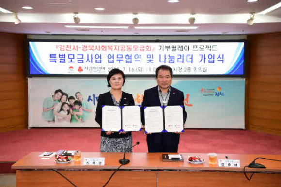 행사는 김천시와 경북사회복지공동모금회의 특별모금 업무협약식으로 시작되었다. 업무협약서는 Happy Togteher 김천운동을 통해 나눔운동을 실천하고 기부문화를 확산하고자 김천시에서 추진하고 있는 기부릴레이 프로젝트 사업의 성공적인 추진을 위해 특별모금 협약 체결과 두 기관의 신뢰와 성실을 바탕으로 건강한 나눔문화가 확산되도록 적극 노력할 것을 내용으로 담고 있다.