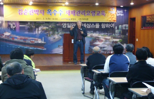 옥수수 박사로 잘 알려진 김순권 한동대 석좌교수가 지난 8일 농업기술센터 회의실에서 지역 농민들을 대상으로 친환경 기능성 옥수수재배관리요령 교육을 실시했다.