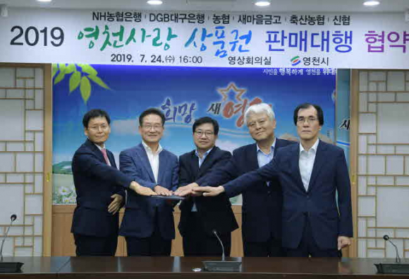 영천시(시장 최기문)는 영천 지역 내에서만 사용이 가능한 영천사랑상품권 발행을 앞두고 지난 24일 지역 내 금융기관과 상품권 판매대행 협약을 체결했다.