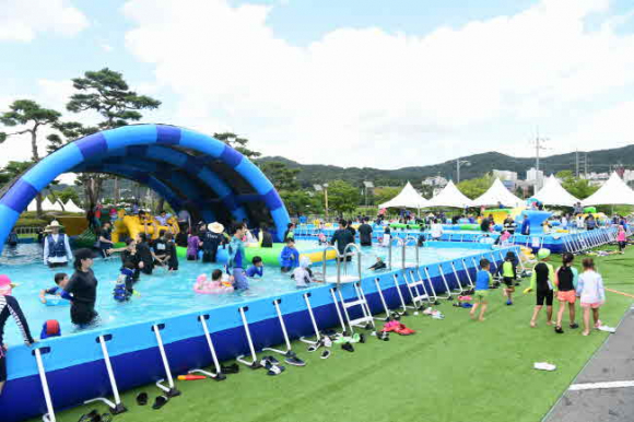 올해 처음으로 종합스포츠타운, 직지사 주차장, 혁신도시 안산공원 등 주요 거점지역 3개소에 마련한 여름 물놀이장 이용객은 주말 평균 2,200여명, 7월 30일 현재까지 9,000명 이상이 다녀가 몽골텐트와 쿨미스트존 쉼터에 빈자리를 찾기 힘들 정도로 시민들로 북적였다.