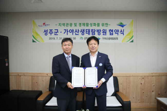 성주군(군수 이병환)과 가야산생태탐방원(원장 신유근)은 7월 31일관광협약을 맺고 MICE 회의 유치 등 지역 관광 및 경제 활성화에 박차를 가한다. ※ 마이스(MICE) : 회의(Meeting), 포상 관광(Incentives), 컨벤션(Convention), 전시회(Exhibition)