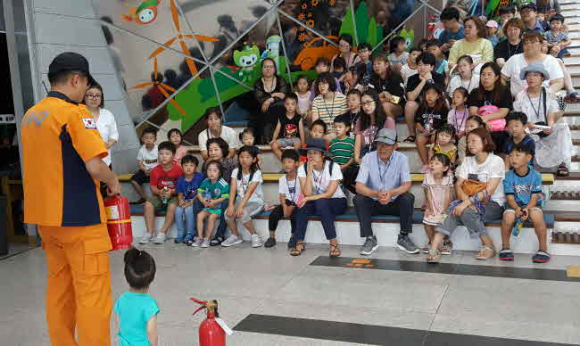 김천시(시장 김충섭)는 지난 7월 31일 김천녹색미래과학관 자위소방대원 및 아포소방서 119안전센터와 함께 관람객 안전과 시설물 안전 관리를 위한 합동 소방훈련을 실시했다.